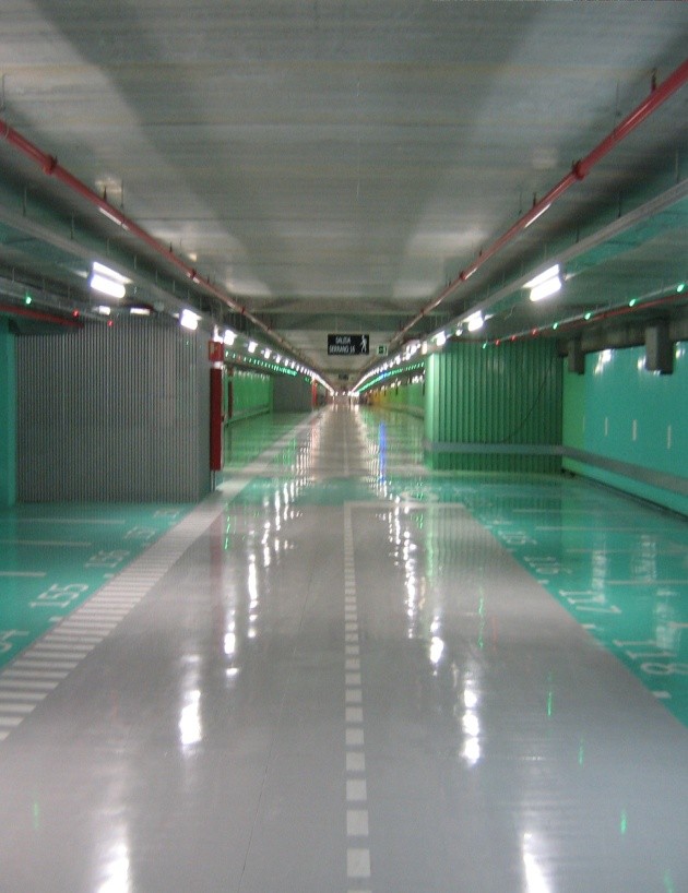 Rehabilitación y pintura del Parking Serrano, uno de los aparcamientos subterráneos más grandes de Madrid, con 3.297 plazas distribuidas en tres niveles. Los trabajos incluyeron la renovación completa de señalización horizontal, aplicación de sistemas antideslizantes y recubrimientos específicos para pavimentos de alta resistencia al tráfico rodado.